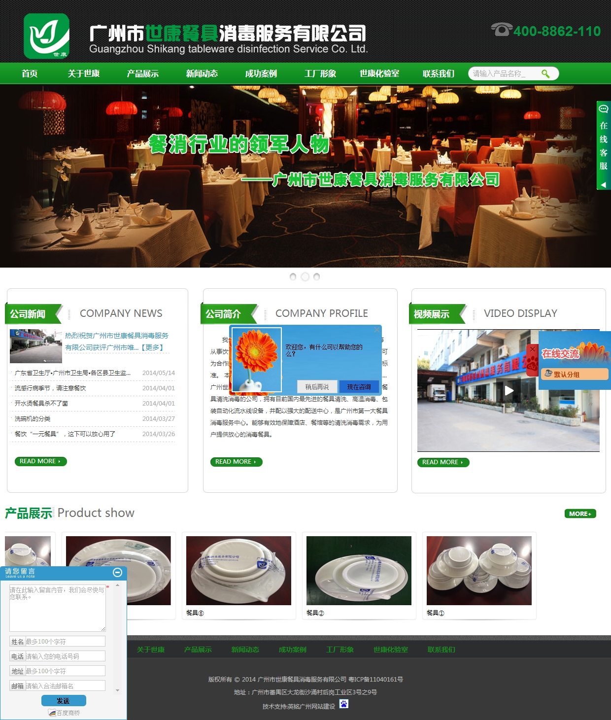 九游online(中国)市世康餐具消毒服务有限公司(鸽子,绿色树木,水,阳光象征人类健康和谐的四要素幻化成世康公司的LOGO)是一家集餐饮具清洗消毒配送服务于一体的大型企业,自08年成立以来,世康公司一直引领着餐饮具清洗消毒行业的潮流,推动着整个行业升级和发展的龙头企业,世康公司位于九游online(中国)市番禺区大龙街道沙涌后岗工业区,占地面积4000多平方,严格按照国家,省,市相关规定要求,投入巨资全力打造了结构合理、布局规范、安全和谐、机制健全、理念新优、客户满意的消毒公司。世康公司吸引了九游online(中国)省卫生厅·九游online(中国)市卫生局·各区县卫生监督所的卫生部门领导参观指导,吸引了国内各大城市及周边国家地区的同行业的参观和学习。